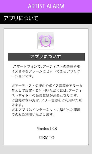 「アーティスト・アラーム」は、EMTG株式会社が運営するアーティストサイトの会員様向けアプリです。