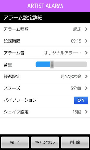 - シェイク機能 (設定した回数、端末を振るとアラームが止まる機能)