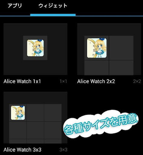シンプルな時計ウィジェットです。ホーム画面に設置してご利用ください。ウィジェットは3つのサイズから選択可能です。