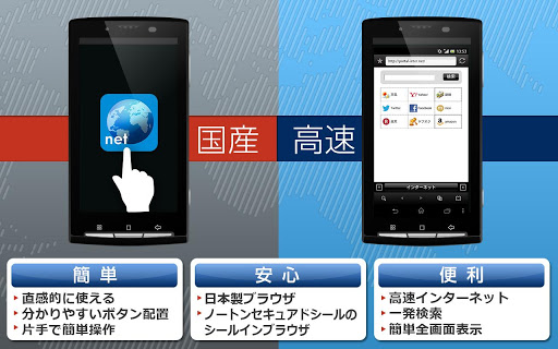 ブラウザの読込が早くサクサク表示、小さめの携帯端末なら簡単に片手で操作、マルウェア感染していないことが確認できる「シールインブラウザ」機能を持った安心の国産アプリ。