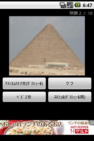 このアプリはピラミッドについてのクイズです。