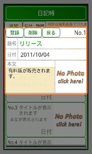 ・日記…画像を張り付けることができる日記帳です。メモ帳代わりにどうぞ。
