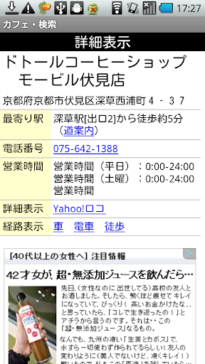 アイコンをクリックするとカフェ、喫茶店、コーヒー チェーン店の詳細情報を表示します。