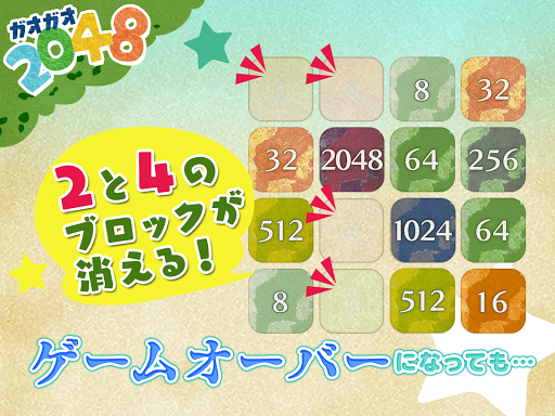 同じ色のブロックを合体させて、2048ガオガオを目指そう!!