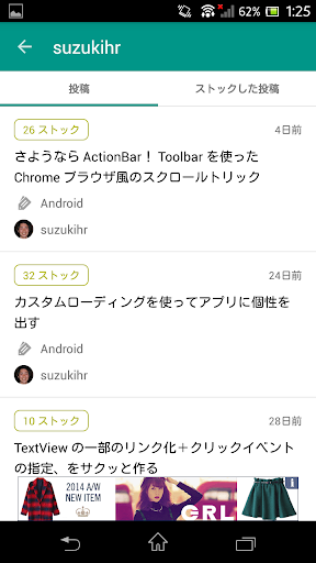 また、ユーザ別の投稿や自分のストックした情報も閲覧できます。