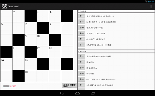 クロスワードパズルで遊ぶアプリです。
