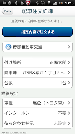 ・このアプリでタクシーのご注文を頂いた場合は、電話でのご注文と同じく、運賃のほかに各会社規定の迎車料金を加算させていただきます。