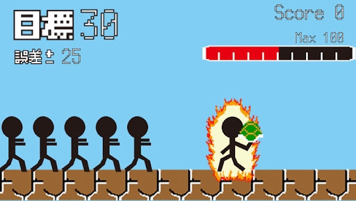 ゲージパワーでタイミングよく甲羅を発射させて、ターゲット数の棒人間を倒せ!