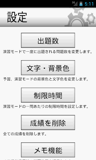 ・問題数、制限時間を設定することで、短時間の学習に最適です。