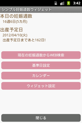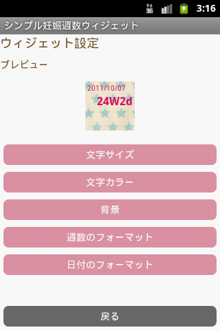 ウィジェット設定画面から、妊娠週数のみ、もしくは妊娠週数と妊娠月数を表示切り替えできるようにしました。