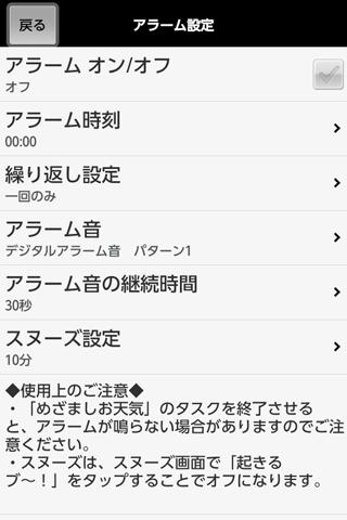 ※スヌーズを設定した場合、アラーム中の画面でジョブーブをタップした後にスヌーズが開始されます。