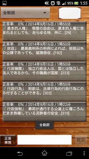 間違えた問題は、「REVIEW」のリストに追加され、正答率別、分野別でも表示できますので弱点強化にご活用ください。「REVIEW」リストに追加された問題は、再度ランダム出題時に正解した場合に、「REVIEW」リストから削除されていきます。