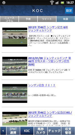 ③オールインワン:全体的なレース関連情報の収集からチェック馬機能で気になる馬の個別レースを確認、IPAT連携による馬券購入、払い戻し額の確認まで、これ一つで競馬の全てを楽しめます。