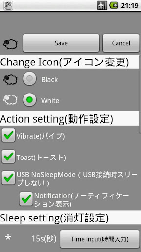 USB接続中(充電中)はスリープモードにならない設定を追加する