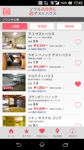 韓国のゲストハウスや格安ホテルなどをお届けするアプリです。