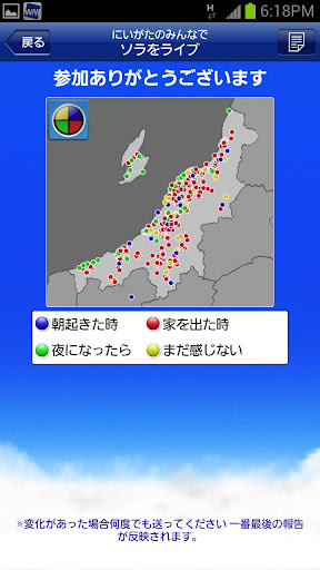 今の空の様子や体感など、カンタンな質問に4つの選択肢から答えるだけ。