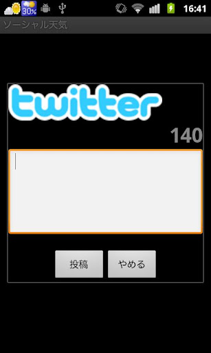 今日、明日の天気予報、ステータスバー登録、ソーシャル、Twitter