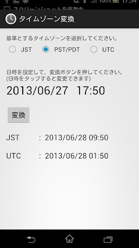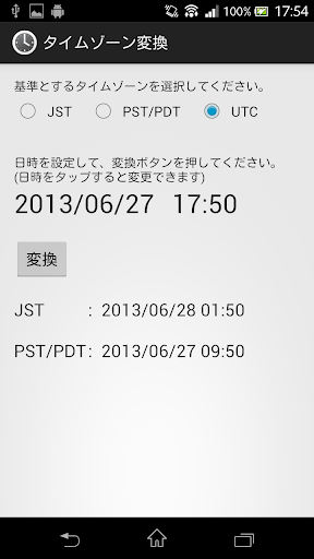 変換元のタイムゾーンをチェック後、変換したい時間を設定して変換ボタンを押下すると変換後の時間が表示されます。