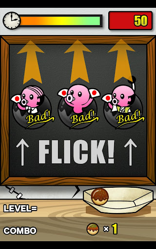 おじゃまキャラによって黒焦げになったタコ焼きは上にフリックして捨てます