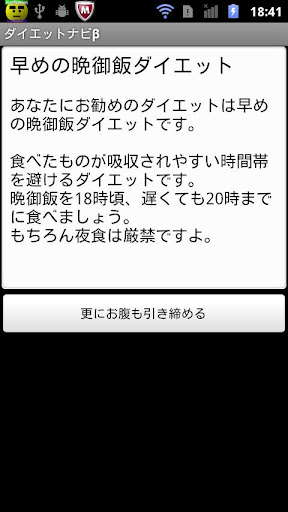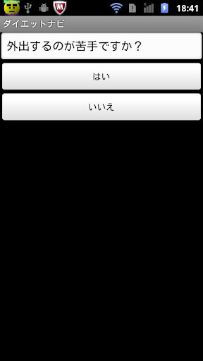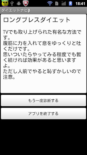 「ダイエットナビ」はいくつかの質問からお勧めのダイエット方法を選択するアプリケーションです。