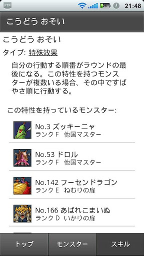 ①モンスターで検索⇒モンスターの持つスキル、特性検索可能