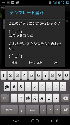 ツイート画面で▼を押す→[テンプレート]→リストから使いたいテンプレートを選択
