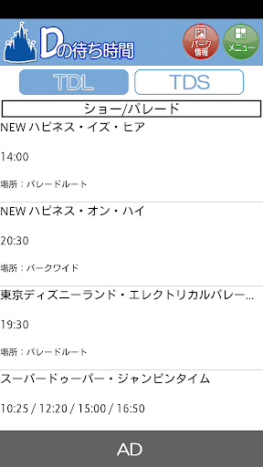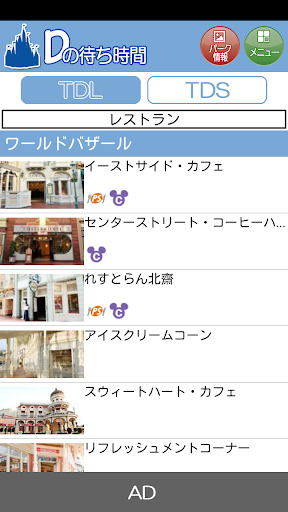 両パークのアトラクションの待ち時間を確認できるアプリです。