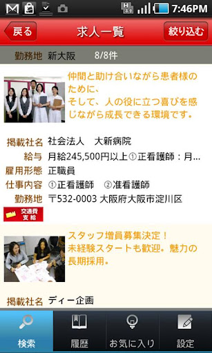 最大の特長は「動画」で職場の雰囲気を知ることができる点です。掲載されている全ての動画を繋げると映画4本分以上にも及ぶディーナビオリジナルの「動画求人」で、家でも外出先でも、いつでもどこでも気になった求人の職場を動画で見学することができます。また、使いやすさも抜群。「職種で探す」、「エリアで探す」、「条件から探す」などの検索条件で、最短でわずか3回のタッチであなたにぴったりの求人情報を探すことができます。