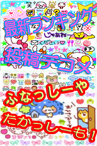 今人気のデコメ、絵文字素材はもちろんの事編集機能を使いチャットで使える簡単なオリジナルスタンプも作成できちゃう♪クリスマスやお正月に使えるグリーティングカード素材も無料でゲット。ランキング等も更新していますので是非一度活用して下さい。