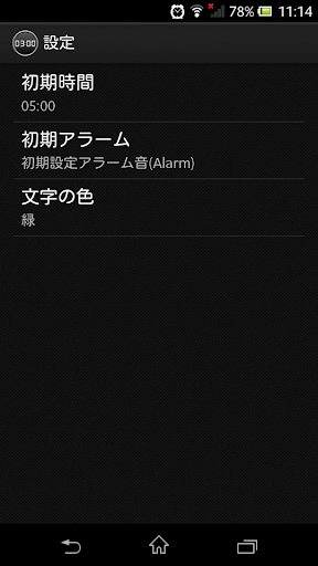 設定画面ではアプリ起動時に自動的に設定される初期時間と初期アラームを設定できます。