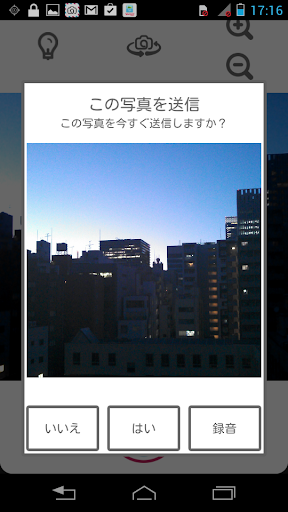写真を撮ると、音声を付けて特定のメールアドレスにすぐ送信することができます。