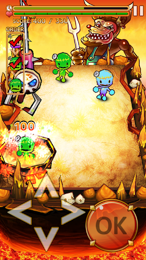 亡者を鍋まで運ぼう!もう一度OKボタンを押すと、亡者を鍋に落とすよ!