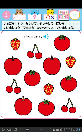 ○食べ物:いちごのイラストをタップ!strawberryといってみよう!