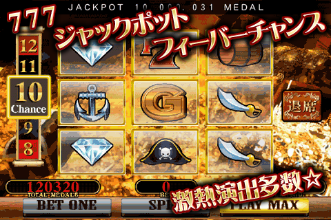 「ドリームスロット~掴め!海賊の秘宝~」は、一発大当たりのジャックポット機能を搭載し、海賊世界をモチーフとした夢のあふれるスロットゲーム!!