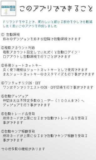 ドリランドをやる上で、煩わしいと感じる部分を少しでも軽減したく思いこのアプリを作成しました。