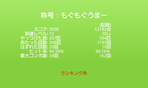 出てきた もぐらをタッチ、見逃すと 1ミス。