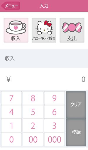 アプリを利用するとハローキティからかわいいスタンプがもらえたり、あなたの収支を見てハローキティが一緒に喜んでくれたり、心配してくれたり・・・。ハローキティと一緒に、あなたの大切なおかねをしっかりと、そして楽しみながら、管理しましょう。