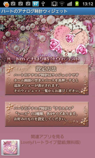 ハートの形が可愛いアナログ時計ウィジェットです。