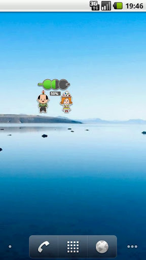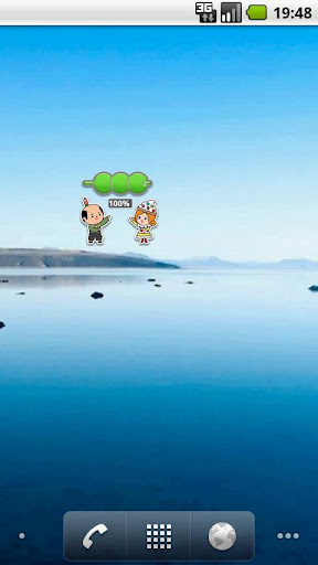 バッテリー残量に応じて、お団子型のバッテリーが変化していきます。また、それに合わせて、「かしなりくん」と「スイーツ姫」の表情も変化していき、非常に可愛らしいバッテリーウィジェットです。(スクリーンショットの画像以外にも色々な表情を見せてくれます。実際にどのように変化していくかはインストールして、楽しんでみて下さい♪)