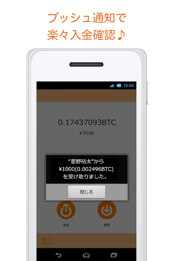 ビットコインの送金と受取を簡単な操作で可能にするアプリです。