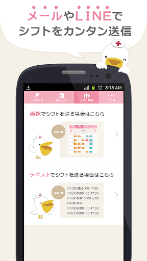 登録したシフトは画像やテキストでお友達に共有できるので、予定を合わせるのがラクラクに!広告なし、利用は全て無料です。