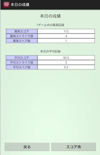・戻る:本日の成績画面を閉じ、新規スコア登録画面を表示します。