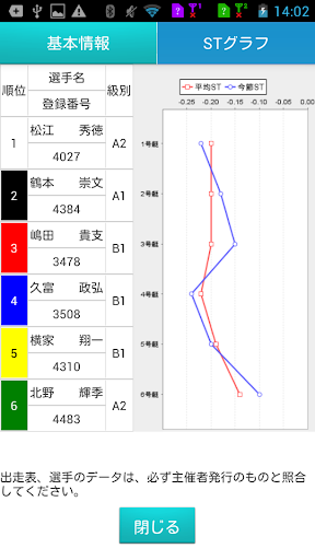 ・選手情報の充実・・・選手勝率や、モーター勝率など、要望の大きかった選手情報を充実しました。また、新たに「STグラフ」を追加しました。これは出走表に載っている平均スタートと今節の平均スタートをグラフで表示することで、凸凹具合を視覚化しました。スタートが決まっている選手が一目でわかるようになりました。