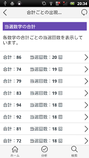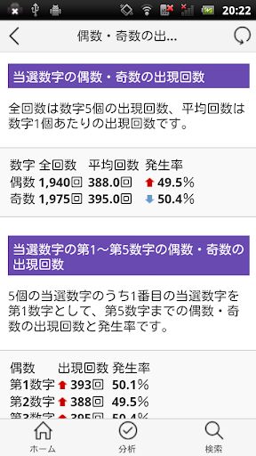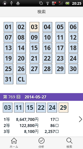 最新の当選数字、数字の検索、その他数字の分析データが簡単に確認できます。