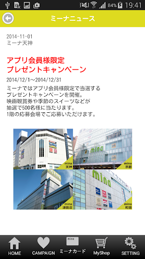 ミーナや各店舗をMy SHOPに登録すると、お得な情報、クーポン、プレゼント引換券が届きます。