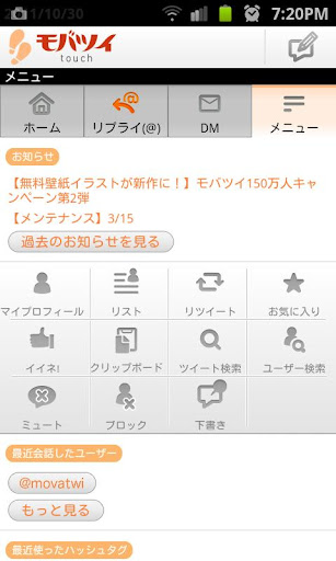 モバツイtouchの新しい情報は「お知らせ」をご確認ください。