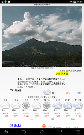 ライブカメラ天気予報〜DroidLiveWeatherは2日分の詳細天気予報と5日分の概況天気予報がご覧になれます。