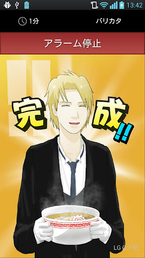 萌えイラストレーターによるラーメンタイマーアプリです。1分、2分、3分、4分、5分から設定でき、時間になるとアラームで知らせます。