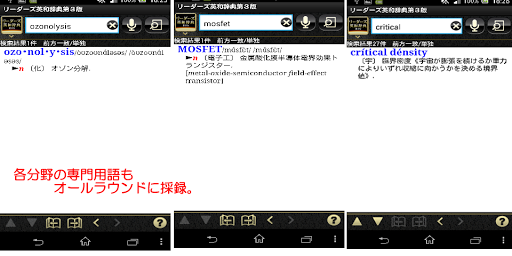本アプリは、高速で豊富な検索機能を搭載した富士通製『ONESWING』製品名はInspirium 辞書検索ライブラリ V1.0を採用しています。