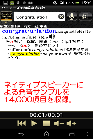『リーダーズ英和辞典』にはネイティブスピーカーによる発音サンプルを14,000項目収録。